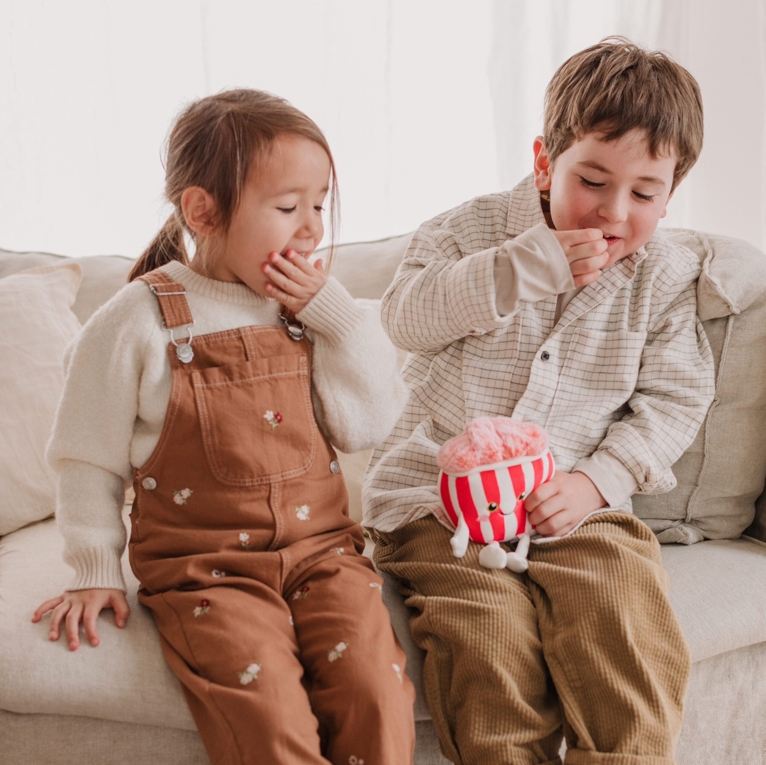 Popcorn bursts onto the scene with a tub full of colourful personality! With his classic red‑and‑white striped bucket and fluffy red popcorn popping out the top, he’s always ready to bring the fun. His bouncy, upbeat look makes him impossible not to smile at, turning any moment into a mini celebration. More than a plush toy, Popcorn adds a spark of joy wherever he goes, like a tiny movie night party you can take anywhere.