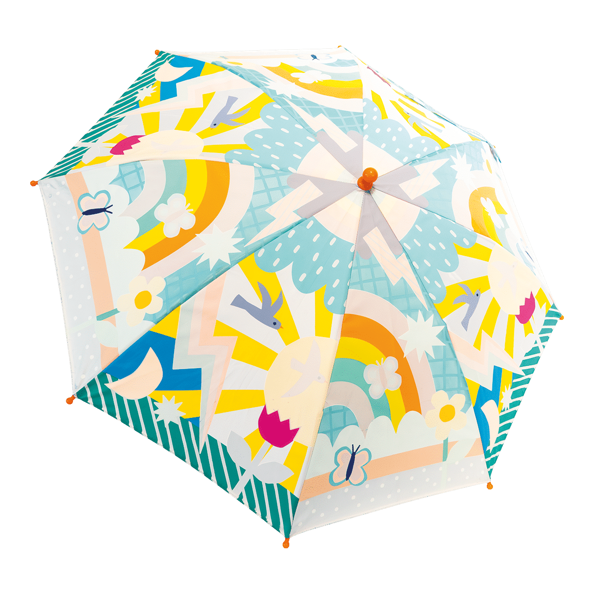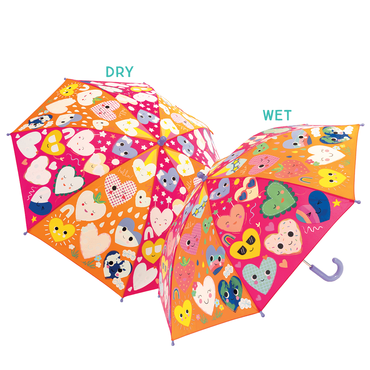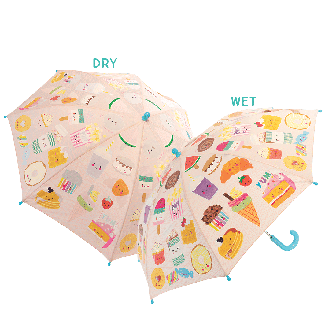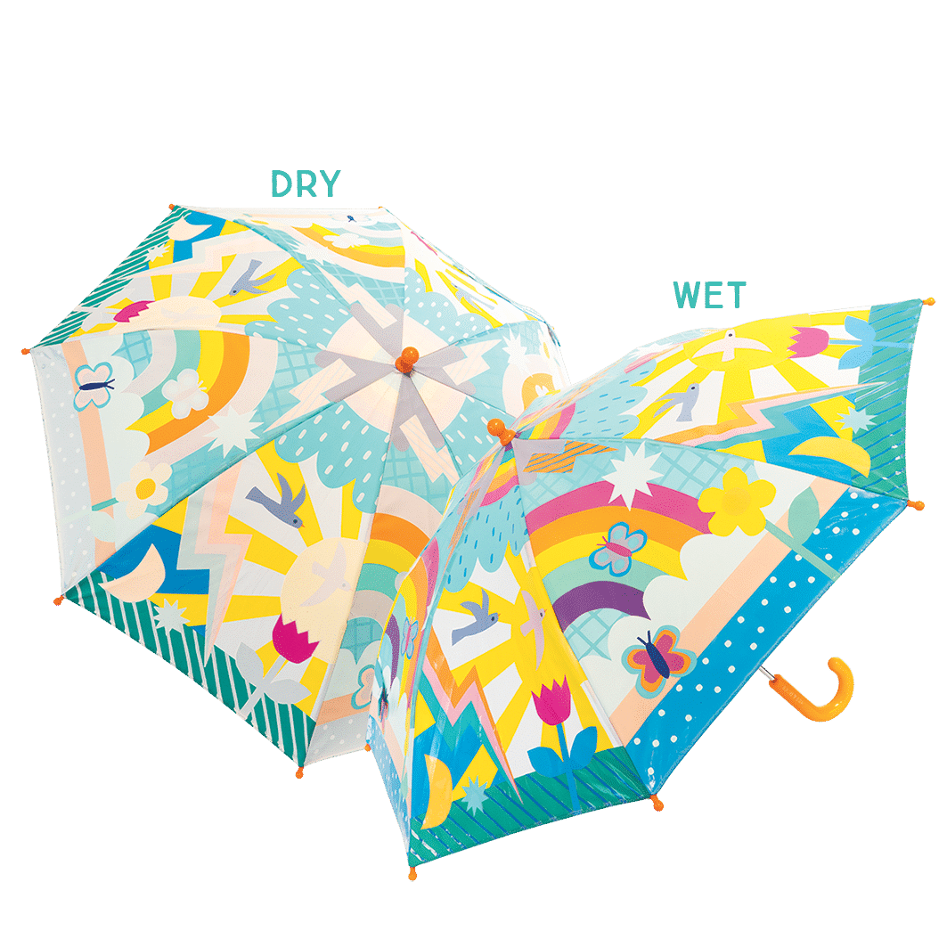 Our super popular Colour Changing Umbrellas in a bigger size! Our mission is to spread more smiles across rainy skies, that’s why our unique, bright and FUN designs are now in a 17″ format, suitable for age 6 and upwards to dance and prance on rainy days, watching as the white areas turn to colour in the drizzle. So much fun!