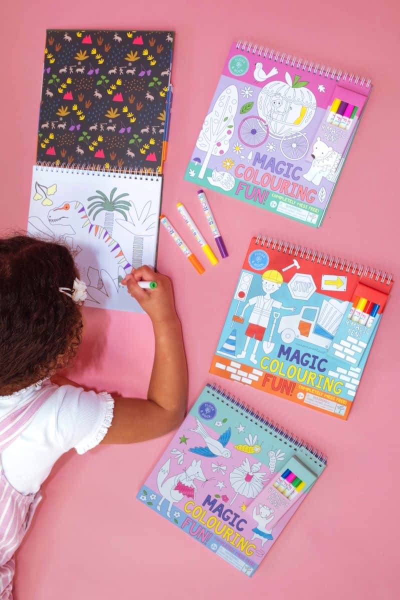Say goodbye to mucky fingers and mess… Our magic colouring-in pens have invisible ink which only appears on our super fun pages! Choose a colour and watch it magically emerge on the page. Each spiral bound pad contains 4 magic pens and 8 colouring pages, this Construction design has diggers, builders, cranes, cones and more.