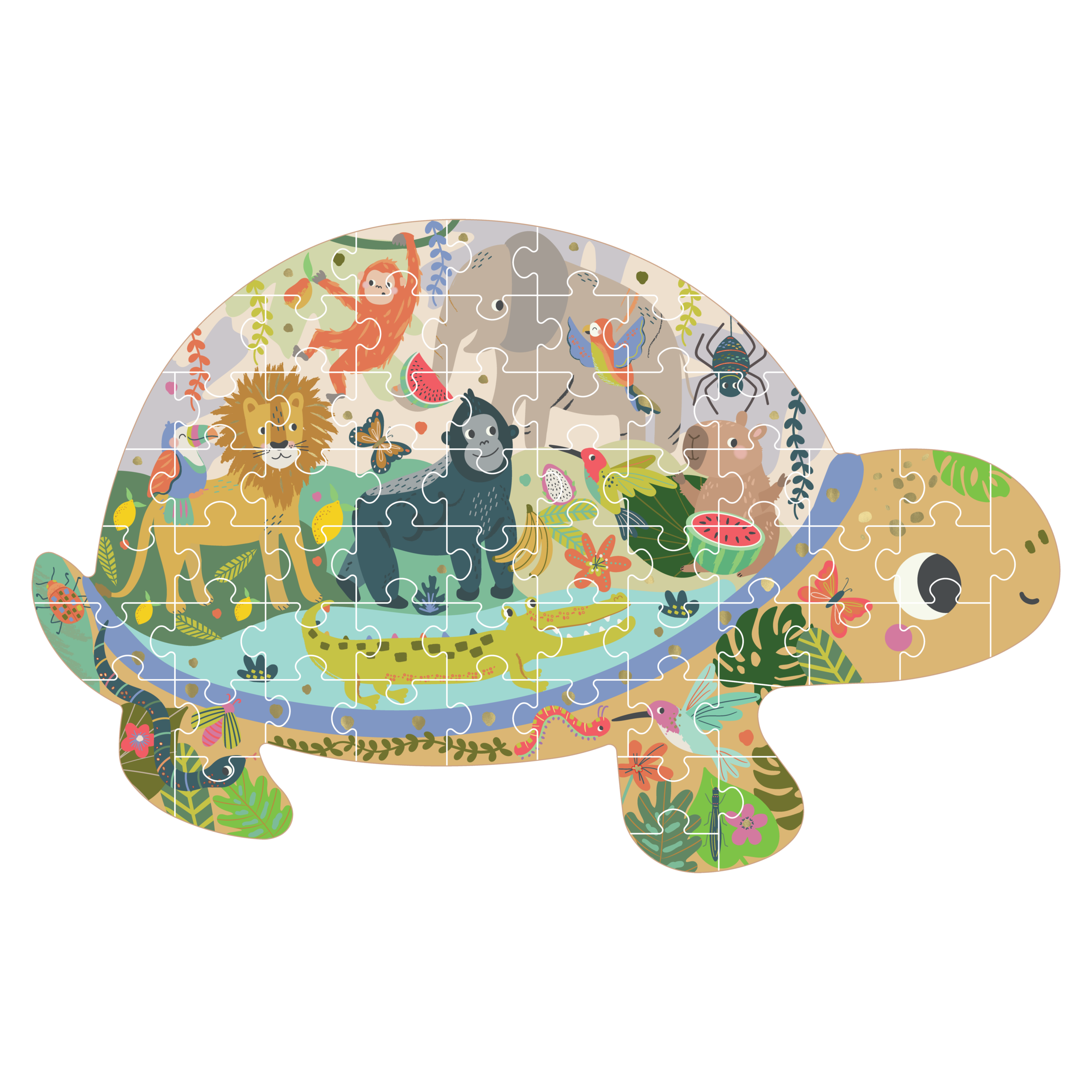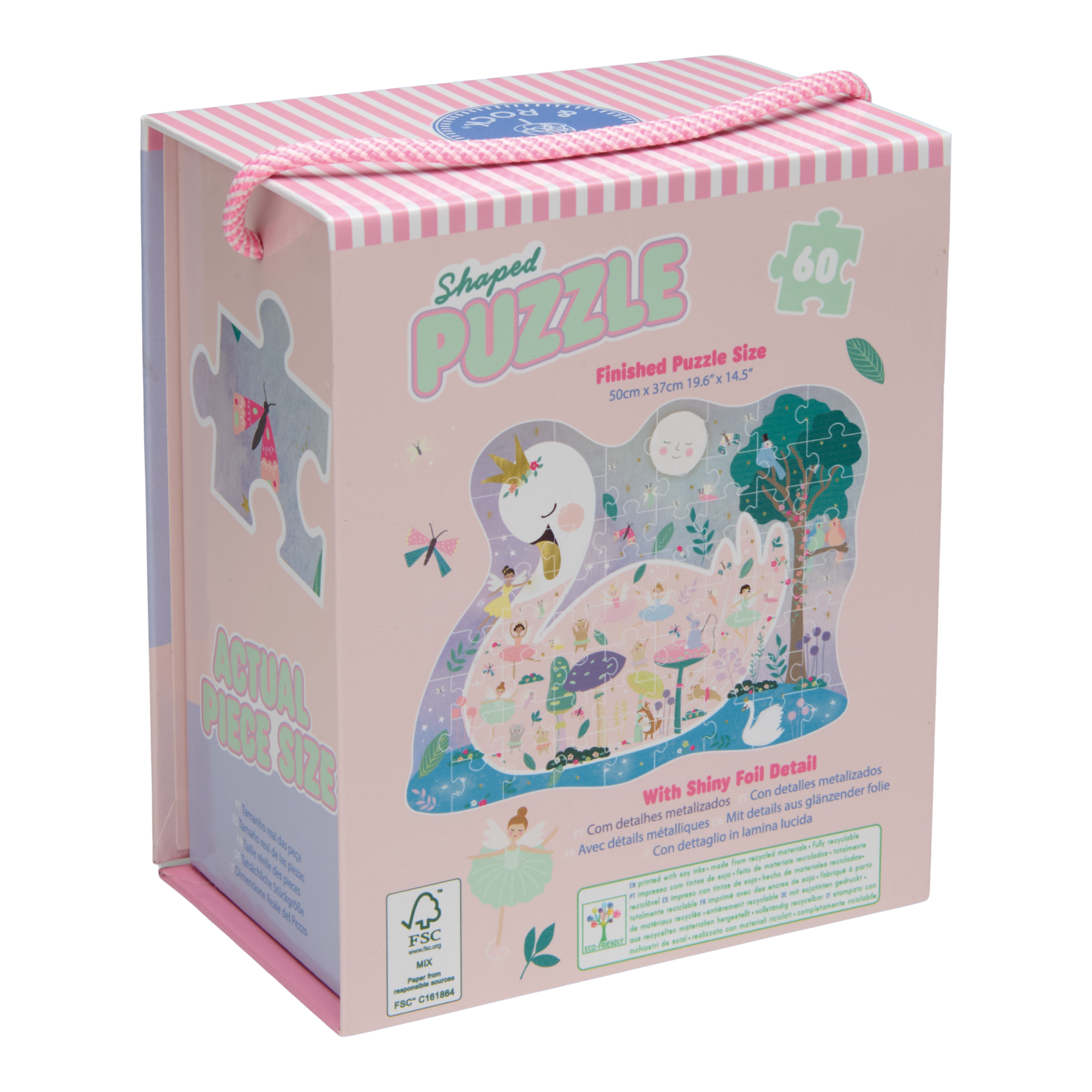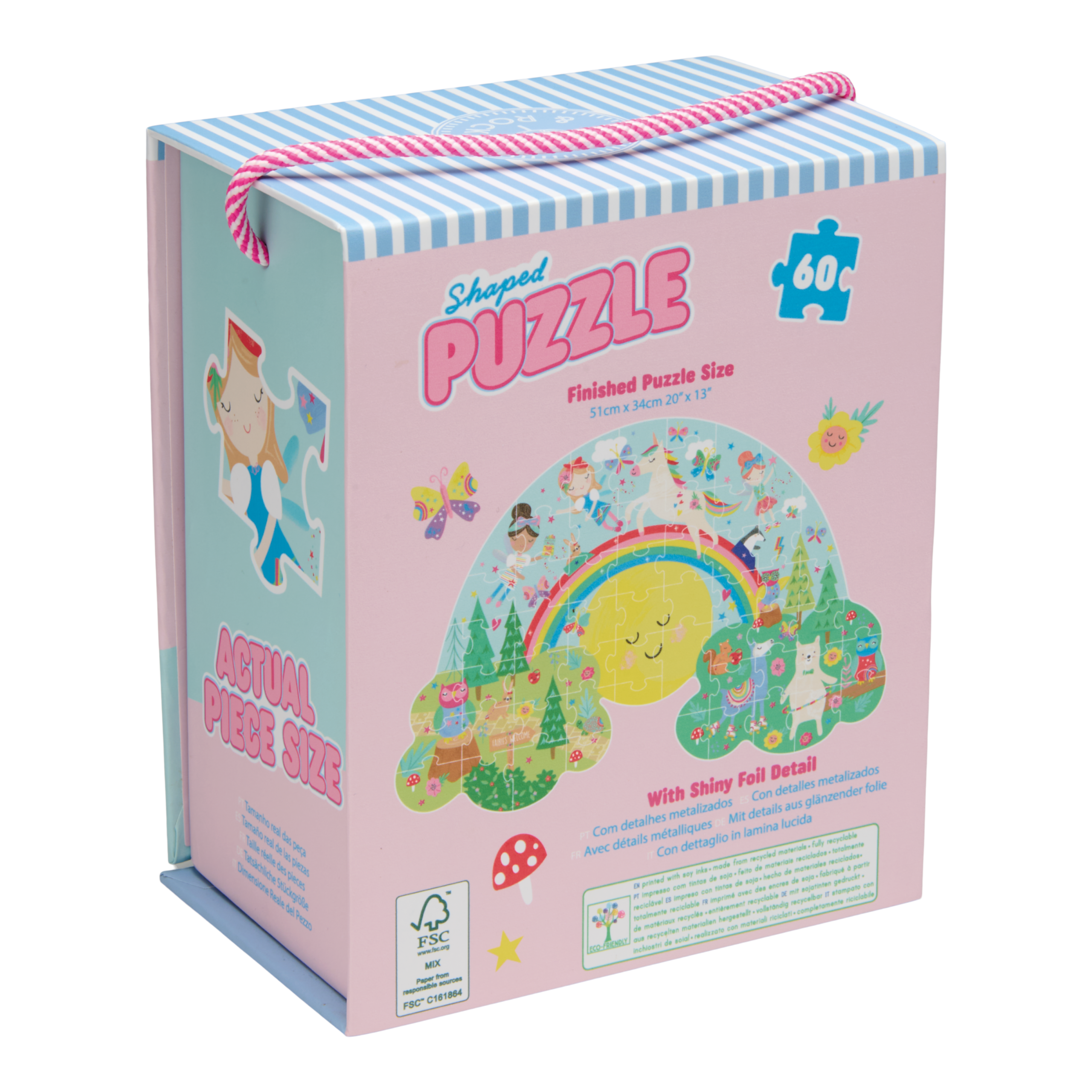 A super fun and bright shaped 60 piece puzzle (with gorgeous foiling detail!) in a brilliant reusable box, complete with magnetic closure and a great little handle to carry it around! Perfect for those aged 5 and above who are looking for a more challenging puzzle.