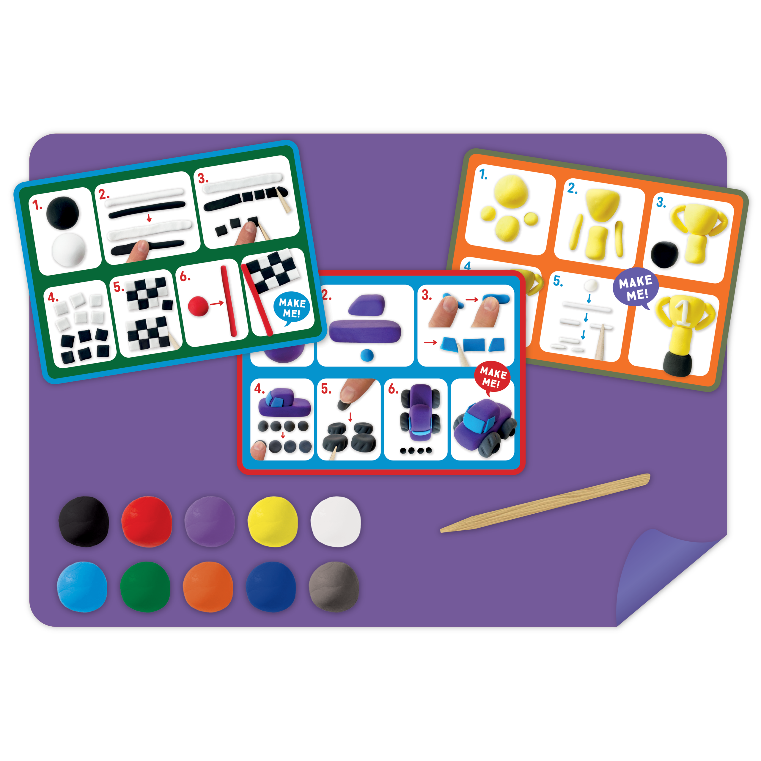 The Cars design has instruction cards to make 10 car-themed characters and accessories.