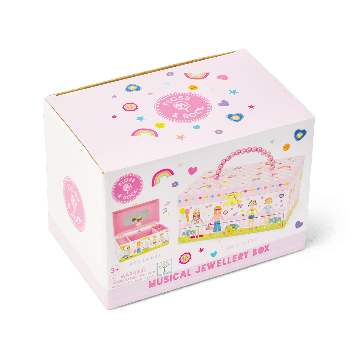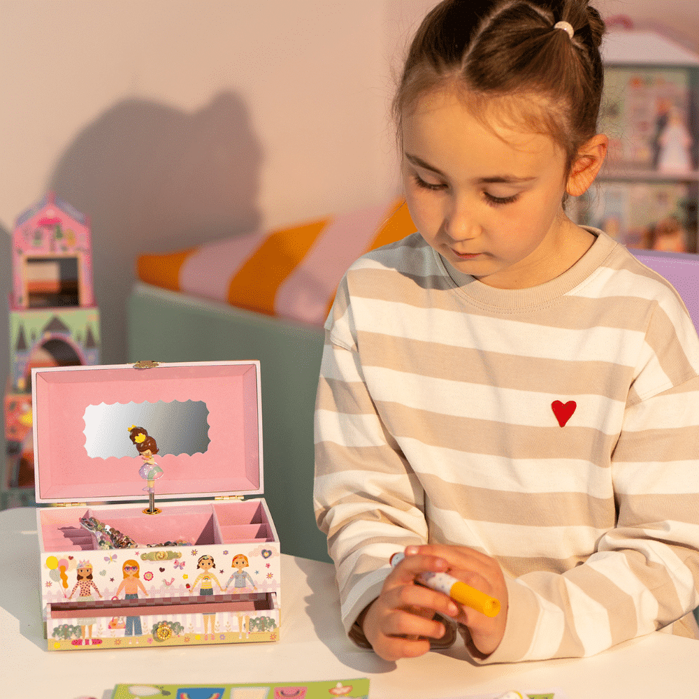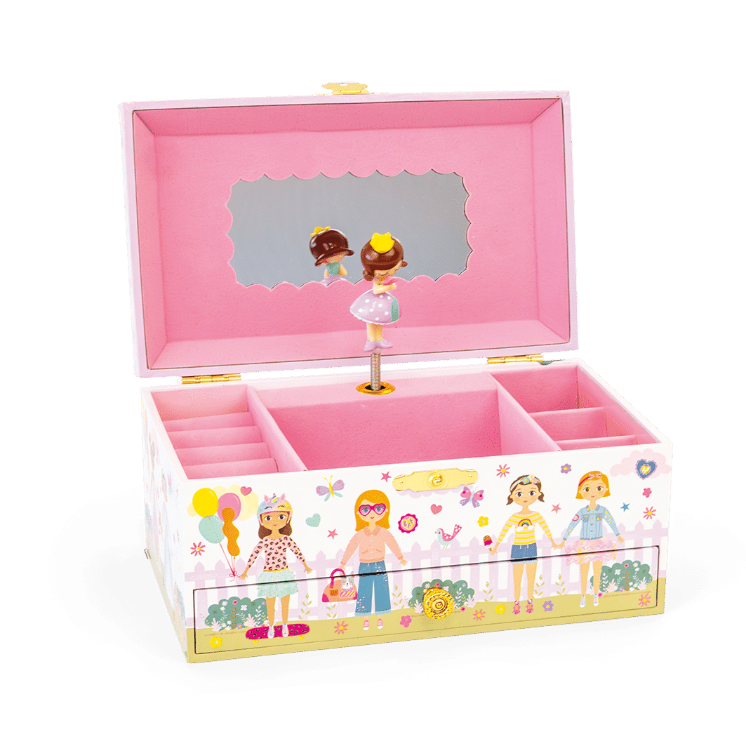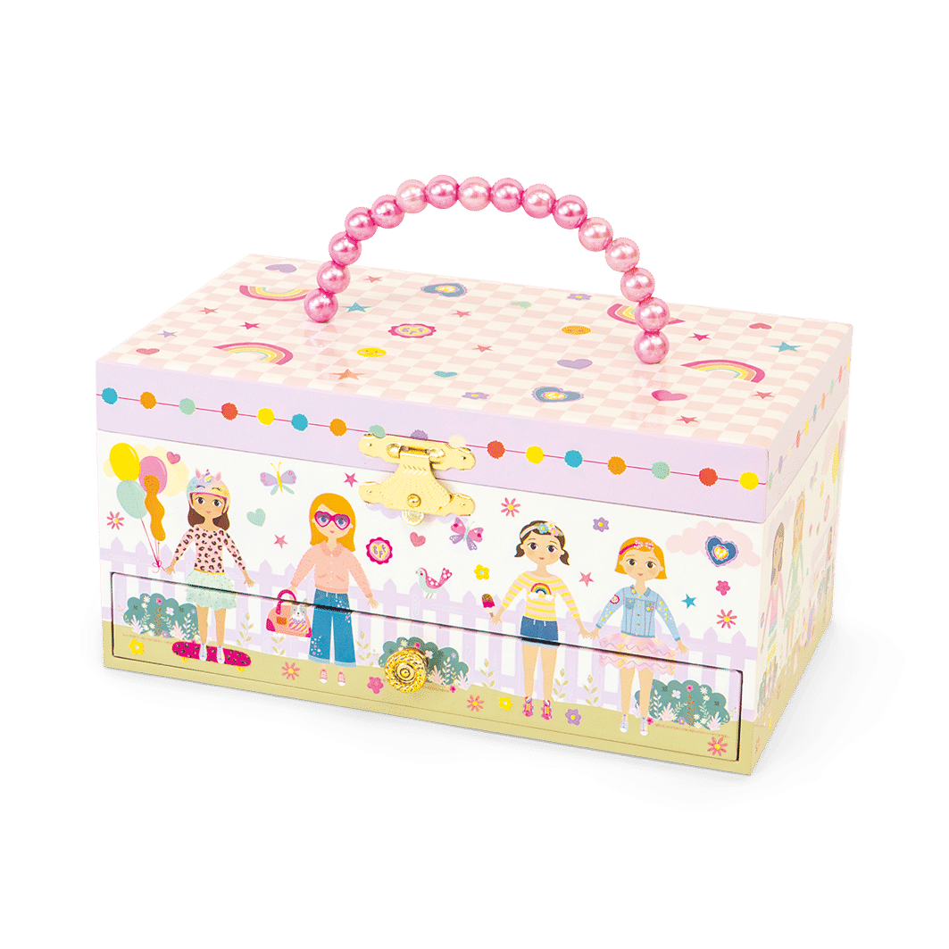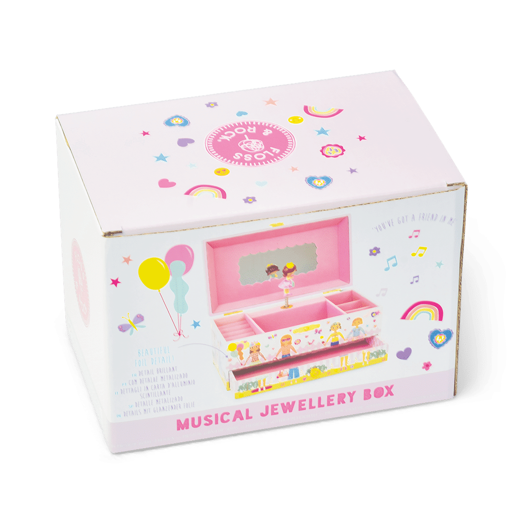 Our super cute Best Friends Musical Jewellery Box is the perfect accessory for your accessories! With its pretty pearl carry handle, you’ll be able to keep your treasures nice and safe whilst you’re out and about, playing with friends. With gorgeous shiny foil details and our lovely best friends illustration, what’s not to love? Twist the winder at the back to hear ‘you’ve got a friend in me’ play whilst the princess inside twirls around!
