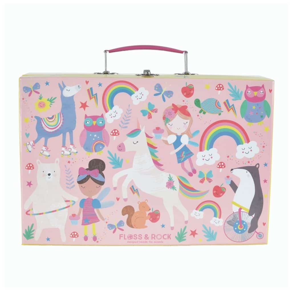The brightly coloured box contains illustrations of unicorns, fairies, rainbows, llamas, bears and more.