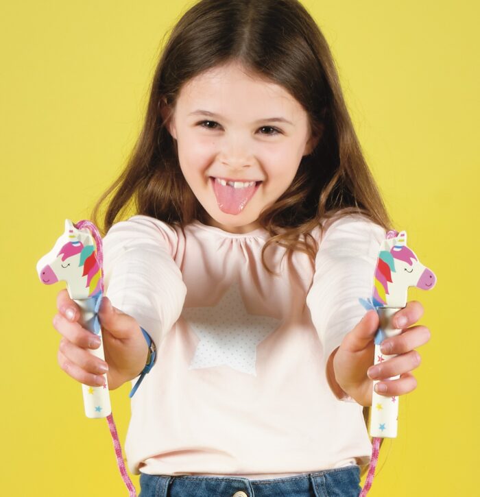 HOP…SKIP….JUMP….!! Make skipping extra fun with our bright and colourful Skipping Rope. Featuring hand painted wooden handles.