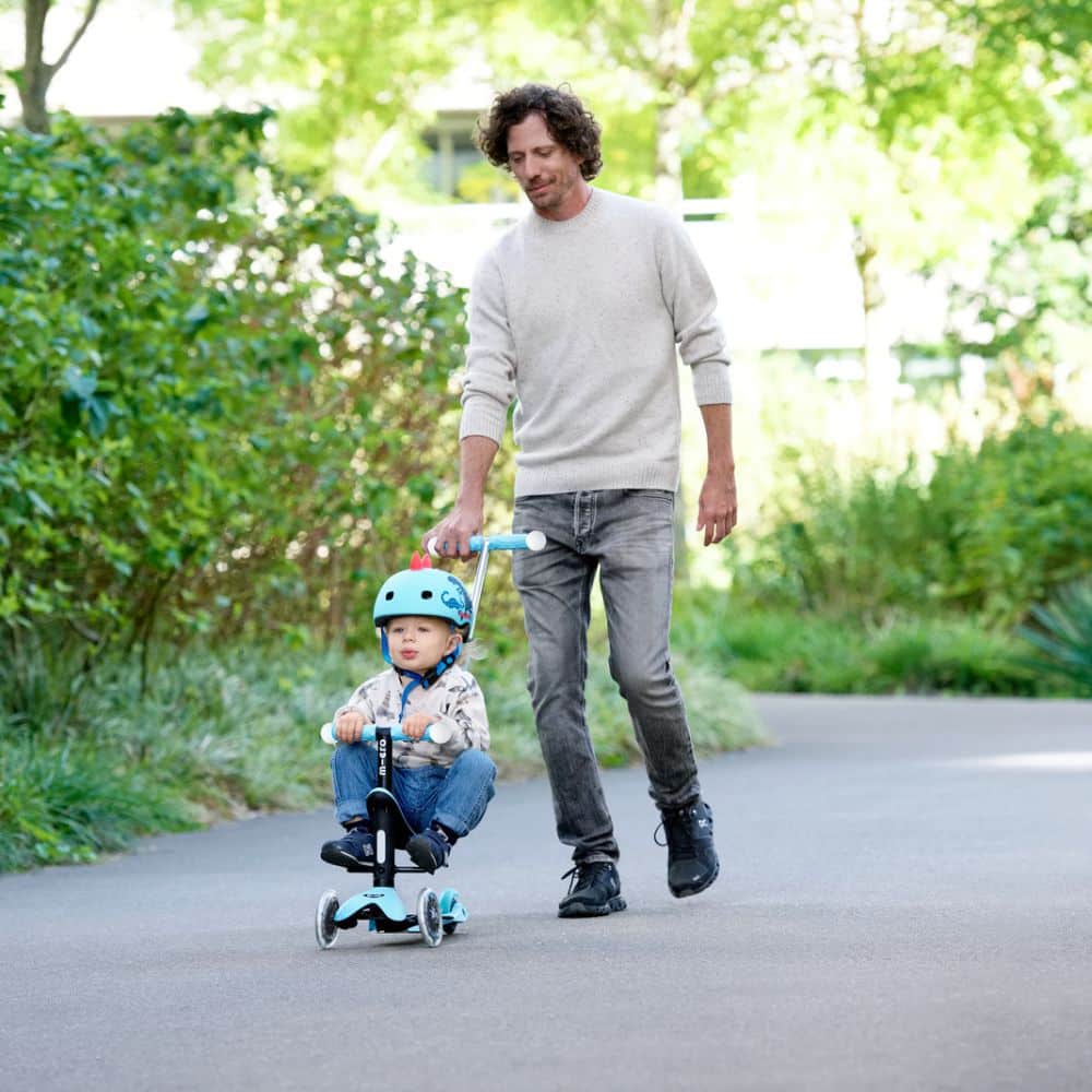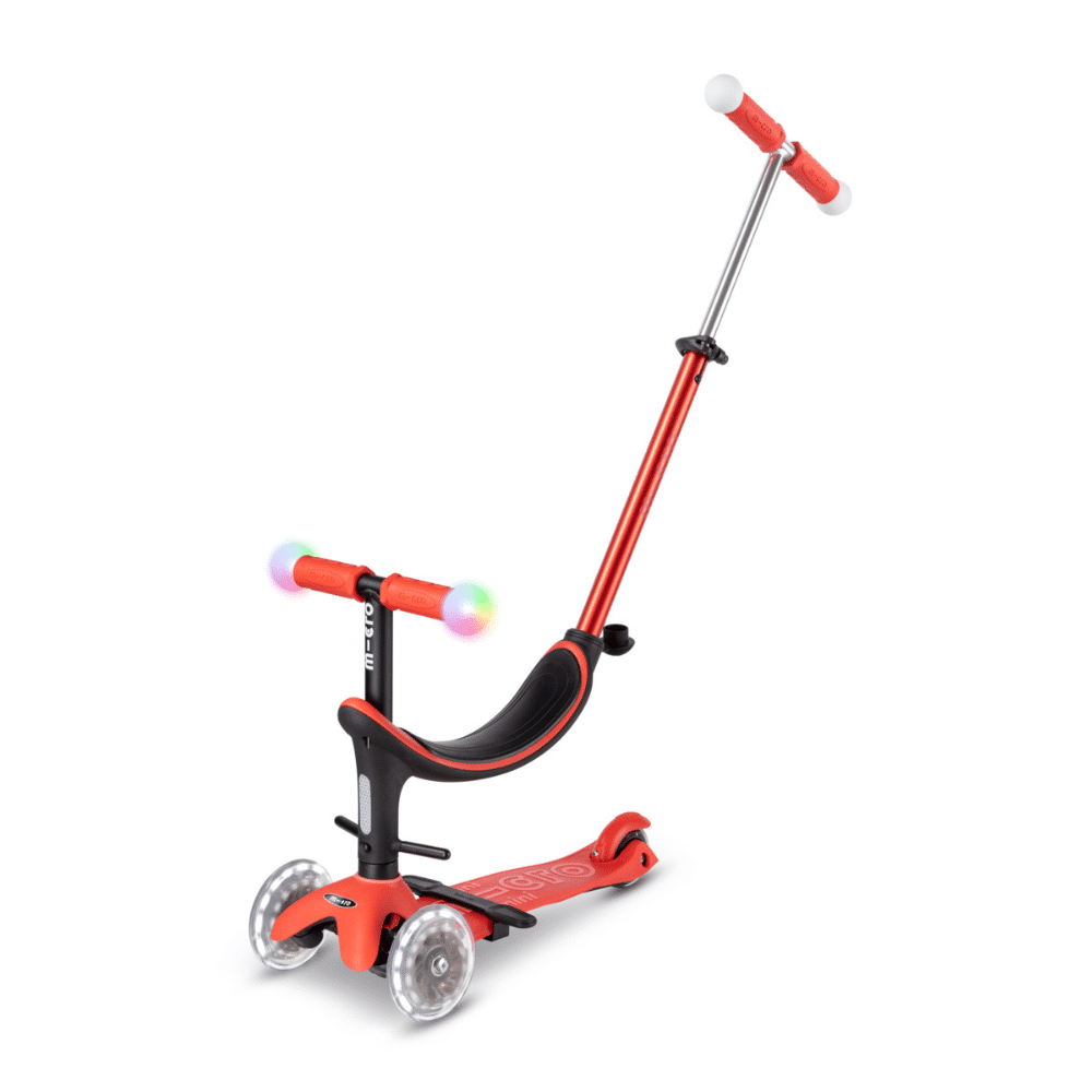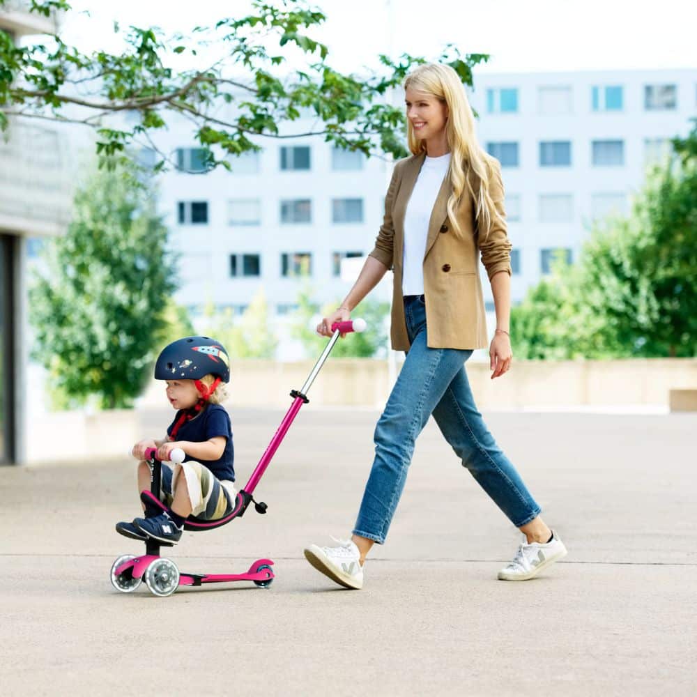 When they are ready, remove the seat. The parent steering handle becomes an adjustable handlebar to form your child’s first scooter. Light up wheels & adjustable handlebars. Strong rear brake. Everything you need for your toddler’s first scooter.