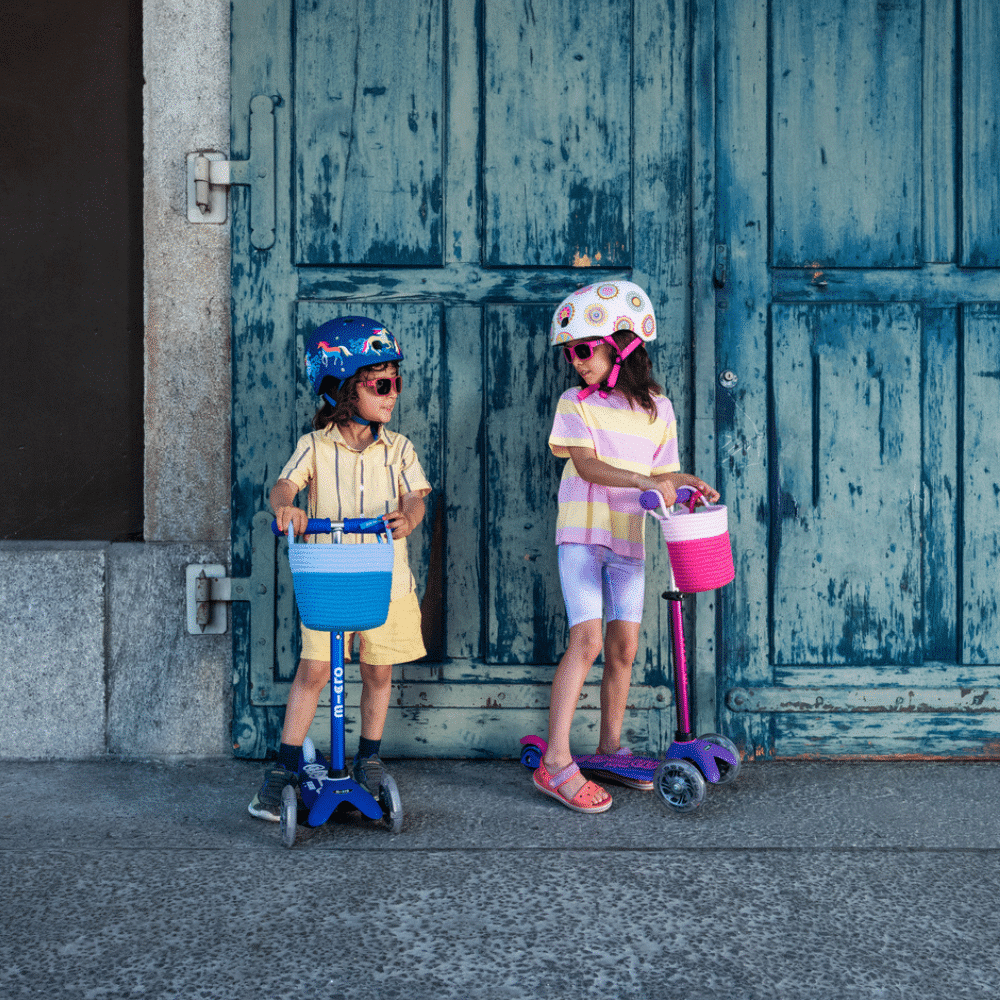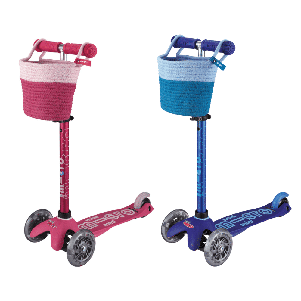 The new Micro Scooter Basket made of cotton is compatible with all Mini and Maxi Micro Scooters and offers space for your child’s favorite teddy or toy car.