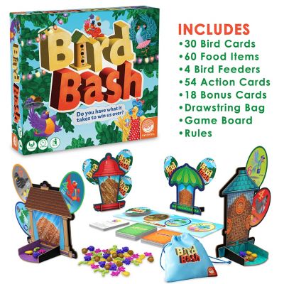 Bring your whole flock together to explore the world of birds! Well-suited for classroom games as well as general board games for kids, Bird Bash improves critical thinking, strategic planning, and problem-solving skills, providing an interactive and educational gameplay experience for kids. High-quality materials and colorful artwork help to make Bird Bash a favorite family board game for years to come! Each player of this classic board game tries to throw the best bird bash around by serving up tasty treats that attract birds to their feeder. They collect birds (and points) by playing wild cards and action cards to gather their favorite foods. The player with the most points at the end of the game wins in this party game that rules the roost!