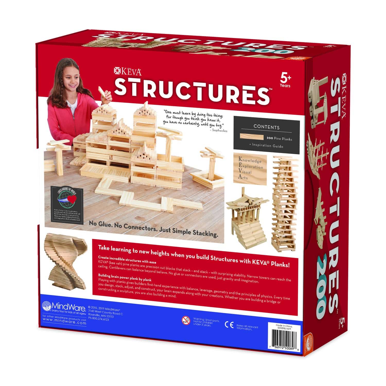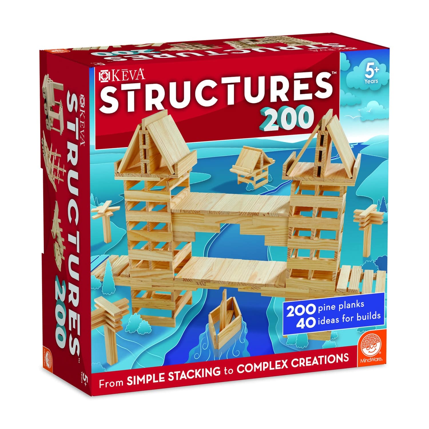KEVA Structures 200 plank kit comes with 200 KEVA planks for free-form building and a 24-page, full-color idea booklet with build-out instructions.