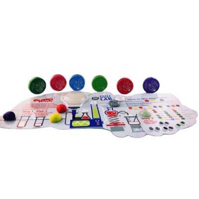 Follow the guidelines on the lab playmat to add just the right amount of putty, then use your hands to mix and stretch the colours together. Includes bulk putty and 6 super-concentrated coloured and special-effects putty (62 grams total).