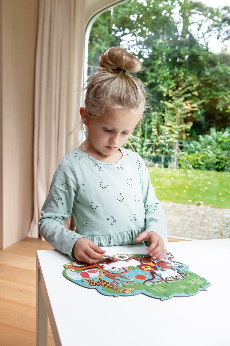Loads of contour puzzle fun with this shaped puzzle, wonderfully illustrated for the youngest puzzlers.