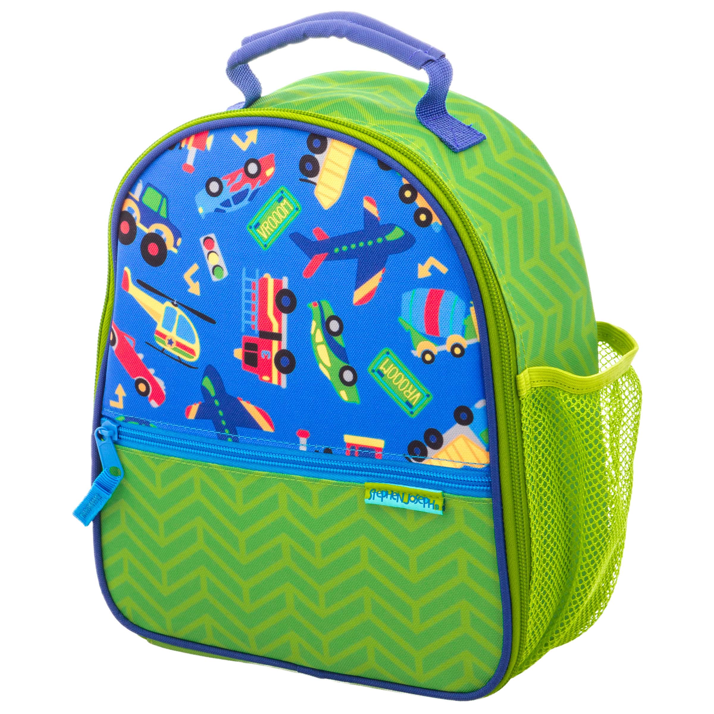 Kids will be “all over” the Stephen Joseph All Over Print Kids Lunch box. Perfectly sized for school-age kids, these fun and functional lunchboxes are not only well-designed but durable. Large enough to carry your children’s lunch and snack needs for school or even a day trip or picnic. The All Over Print Lunchbox features a spacious insulated interior compartment, an outside storage pocket– perfect for mealtime accessories like utensils and napkins, an interior elastic and mesh pocket, and an exterior mesh water bottle holder. Be sure to gear up with the matching Stephen Joseph All Over Print Backpacks.