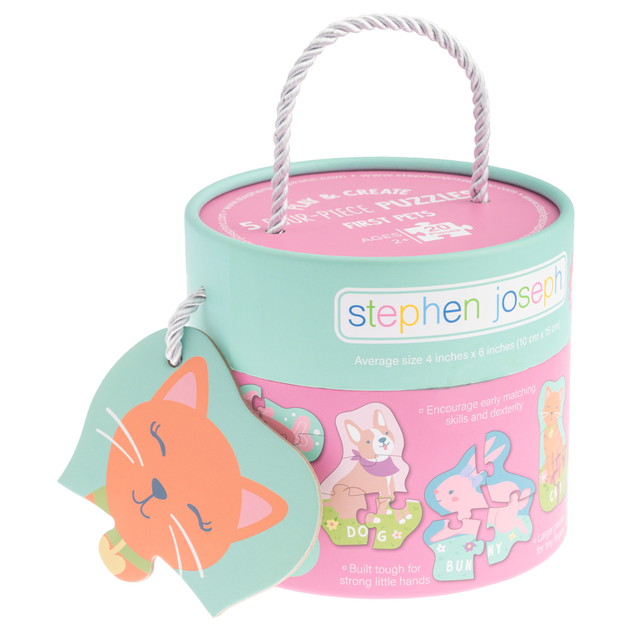 Watch little learners light up as they twist, turn, and match their way through this beginner puzzle! Designed to build early matching skills and fine motor dexterity, each piece invites hands-on exploration and discovery. Housed in a sturdy, reusable cardboard canister, it’s easy to store, grab, and take anywhere. A perfect first puzzle for curious toddlers ready to play and learn.