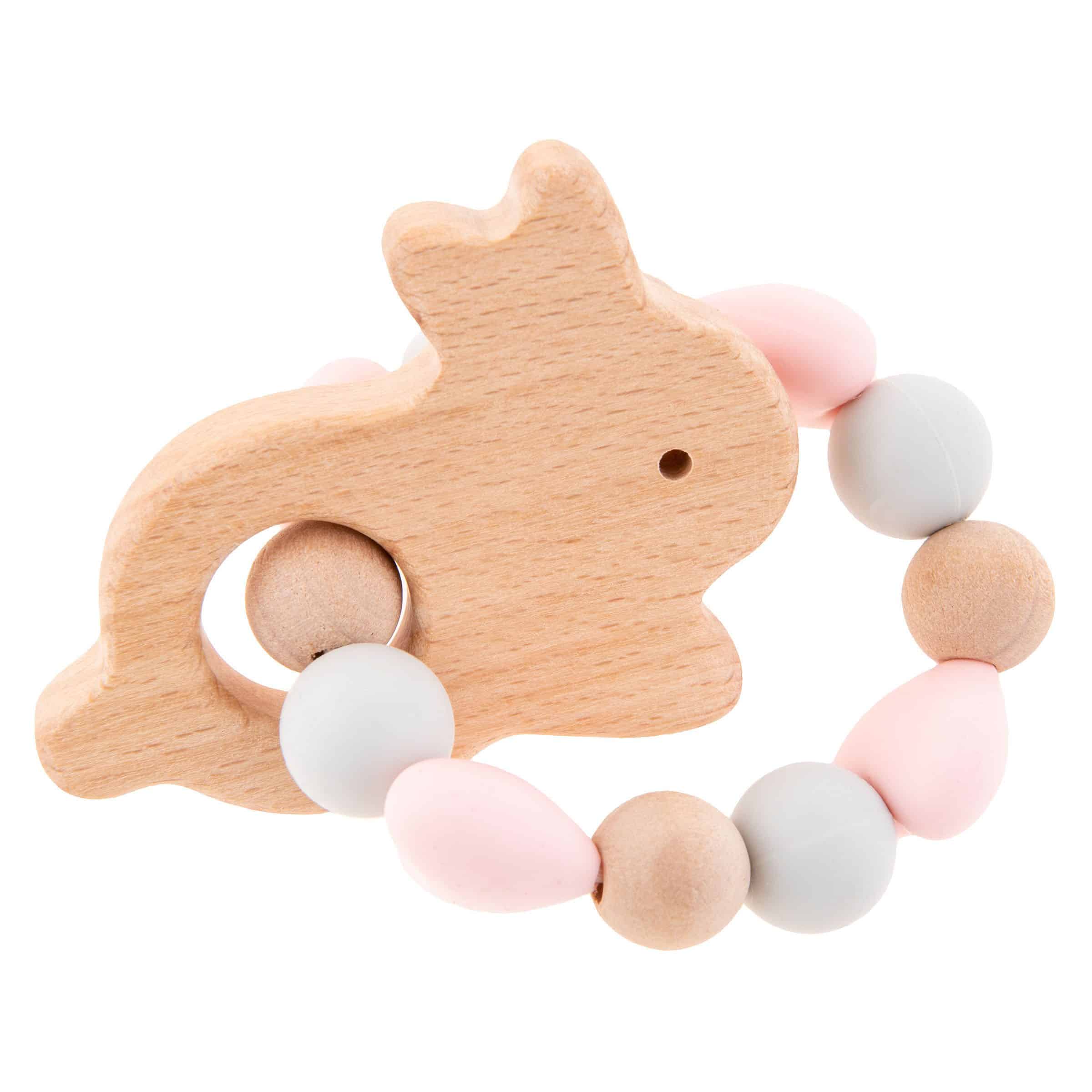 - Silicone and beech wood teether