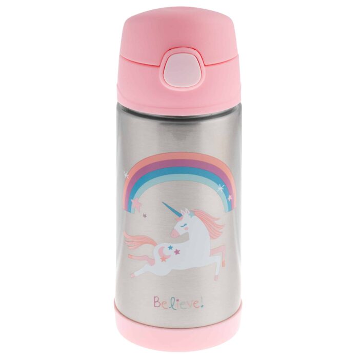 We designed these kids insulated stainless steel water bottles to hold enough of your kiddo’s favourite beverage without wearing out their little hands. Free of all the bad stuff like BPA, phthalates and PVC but made with all the good stuff, like a leakproof lid with an easy-open button, weighted straw, sturdy stainless steel construction with ultra-safe PP plastic details. If it could get any better, this bottle is top-rack dishwasher safe and coordinated back with the rest of the Stephen Joseph back-to-school collection! How dreamy is that?! We know… the dreamiest!