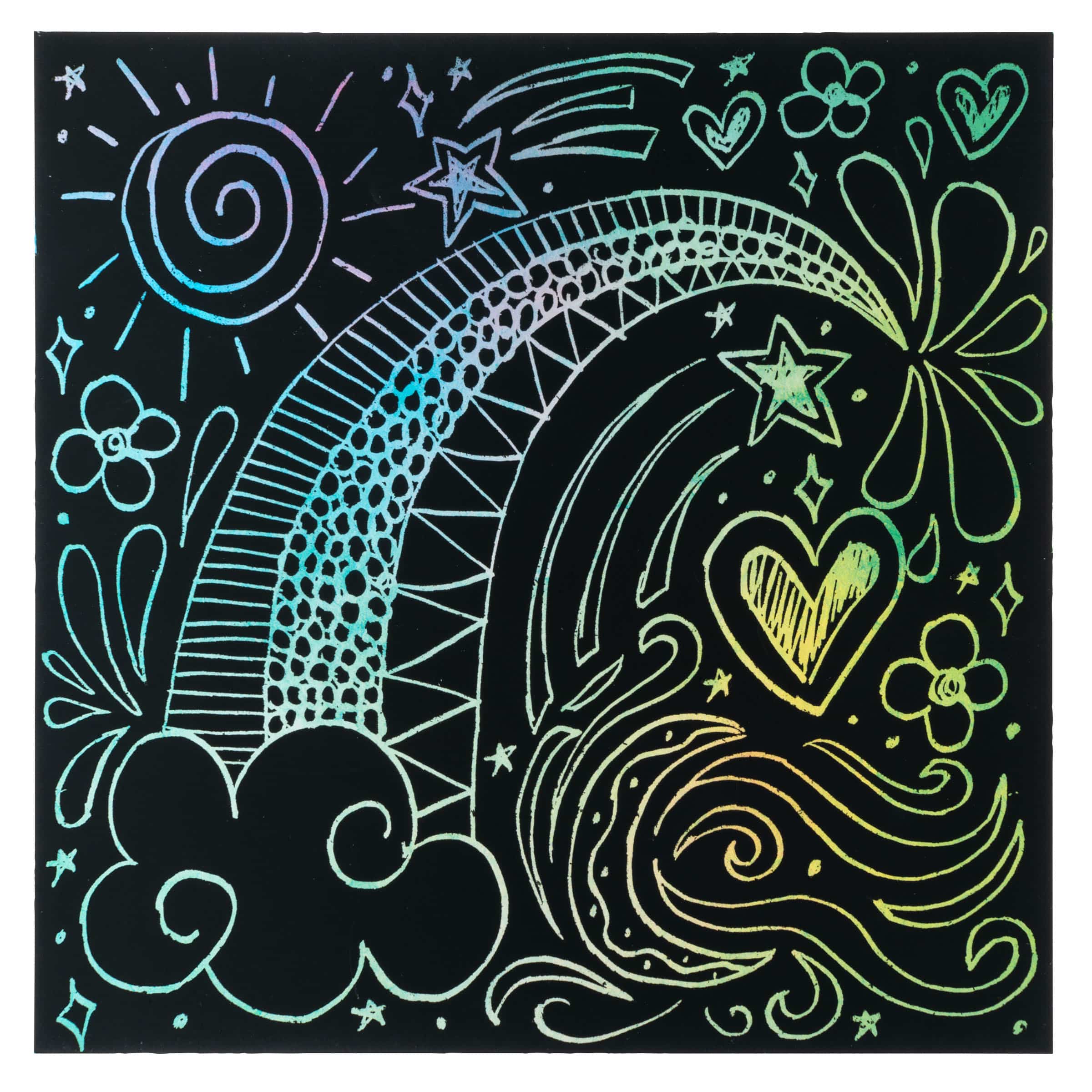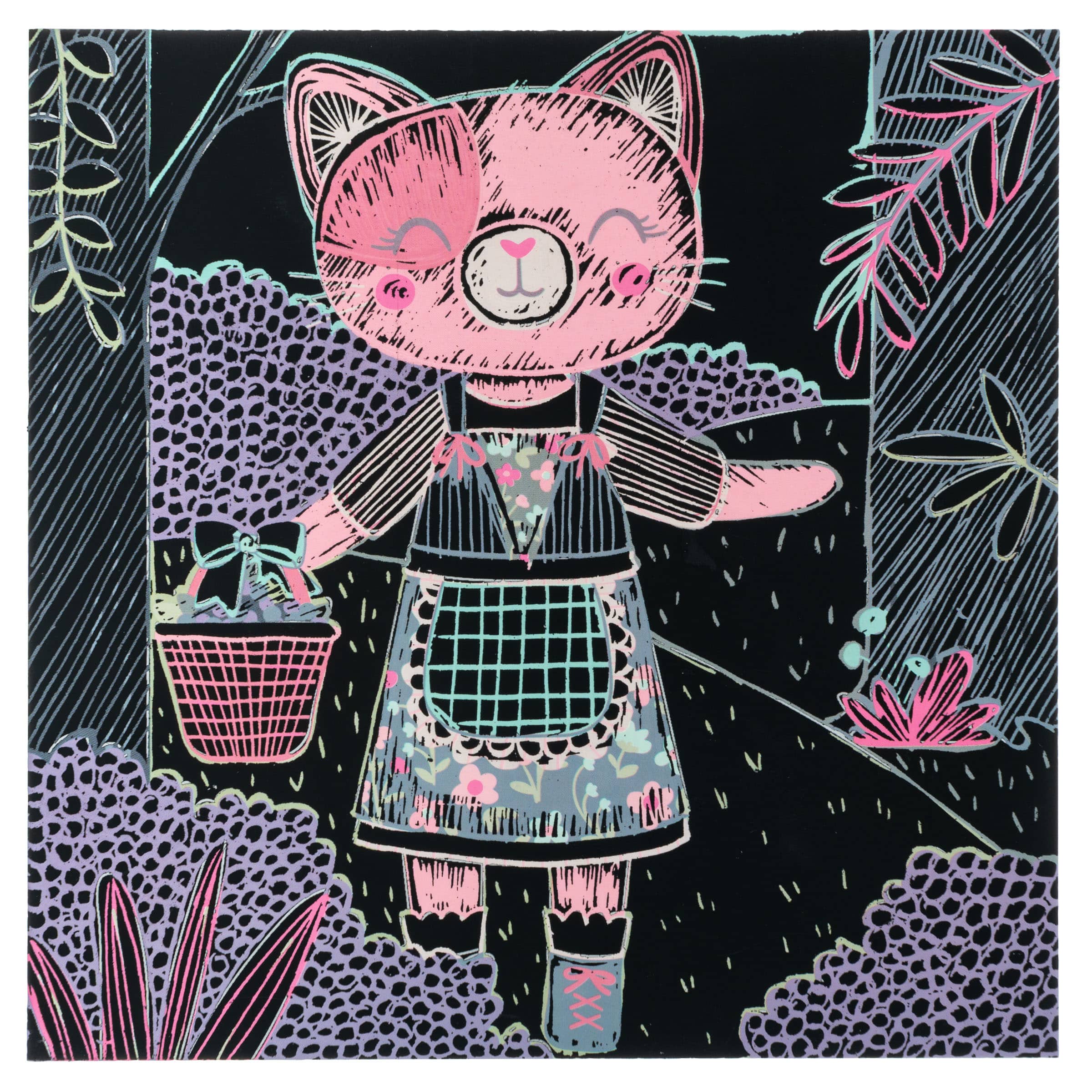 - Includes 4 illustrated cards, 2 blank/rainbow cards, and a wooden scratch tool