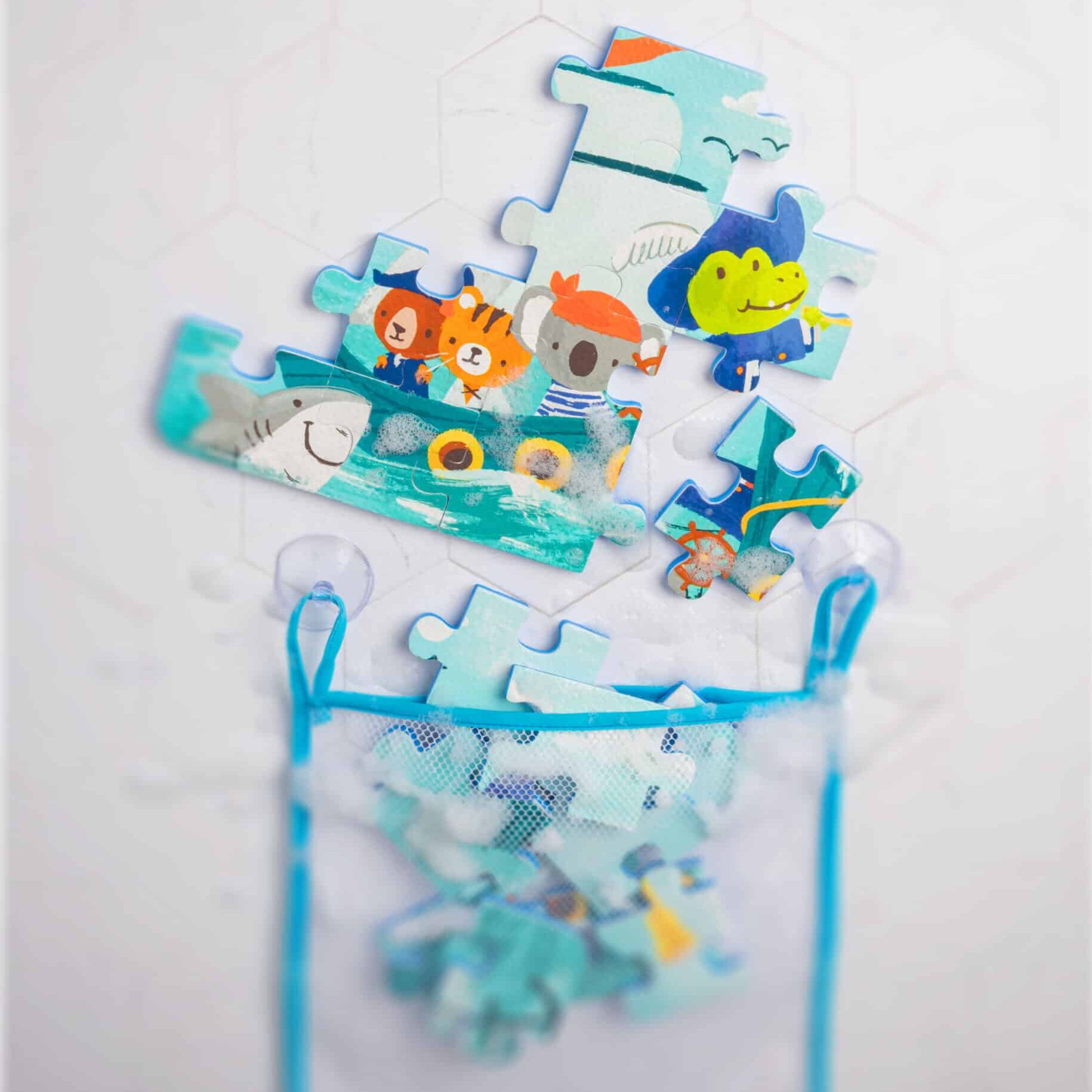 This set includes 20 pieces that stick to smooth surfaces when wet, making for endless fun in the tub. When playtime is over, simply store the pieces in the included mesh bag with a suction cup for easy and dry storage. Splish splash!