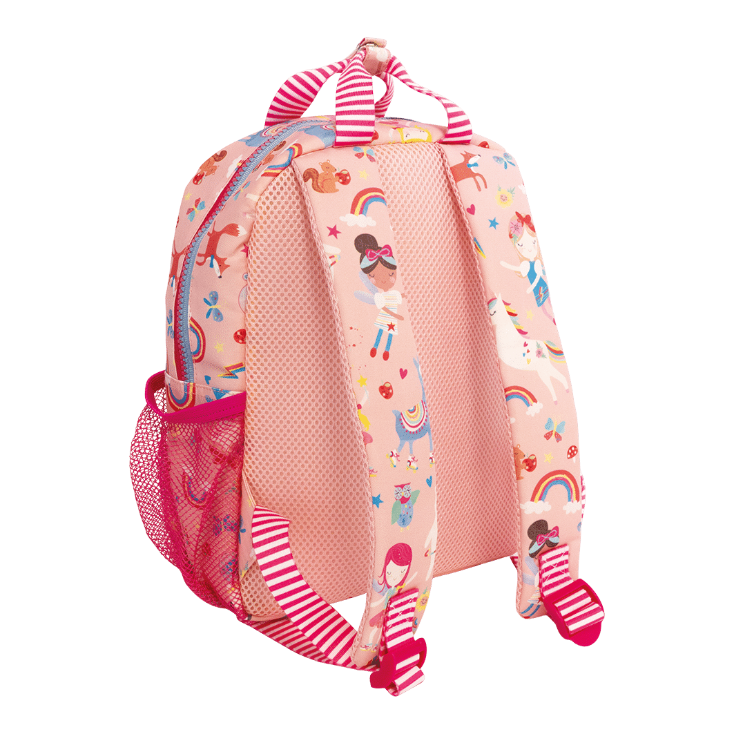 With a handy front pocket, a drinks bottle holder, 2 shaped zip pulls, chunky fun zippers, padded straps for extra comfort and a fully printed lining with sewn in name label.