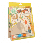 The 6 brightly coloured fun sheets are held together in a spiral bound pad allowing you to flip them over once complete. The built-in Easel stands the pad up so you can use it like a ‘proper’ artist!
