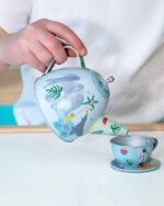 This 14-piece Jungle Tea Set is the perfect excuse for an afternoon tea party with friends. Pour a cup of tea and have hours of imaginative role-play fun! This set includes 1 teapot (and lid), 4 tea cups, 4 saucers, and 4 plates. A fantastic gift that will encourage creative role-play in young children. When playtime’s over, the handy box can be used as storage for the next tea party.