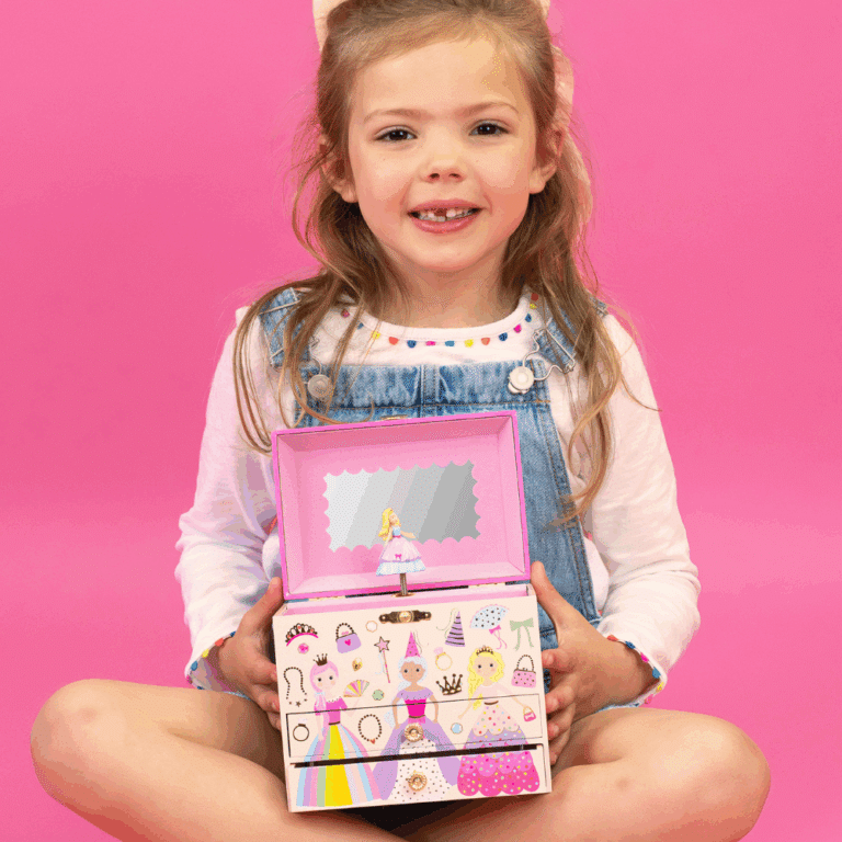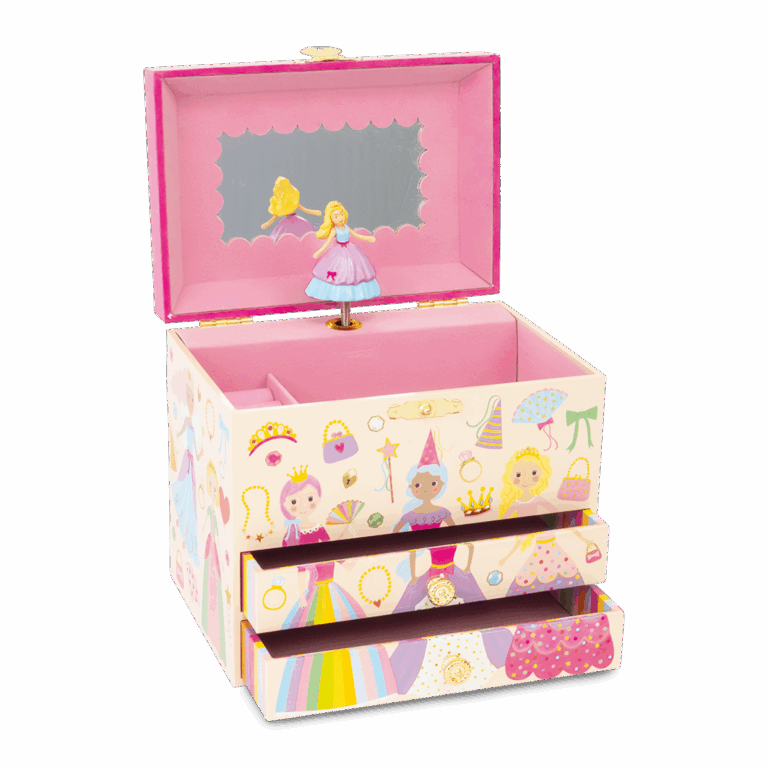 R699.00Introducing the gorgeous Dolls House Jewellery Box – unique, pretty and so much fun, how could anyone not love it?! Open the lid to see a beautiful heart-shaped mirror and twirling dolly, dancing to the tune ‘It’s a small world’. The handy drawer is perfect for all treasures and trinkets. Also included is a lovely glossy, coloured packaging box.