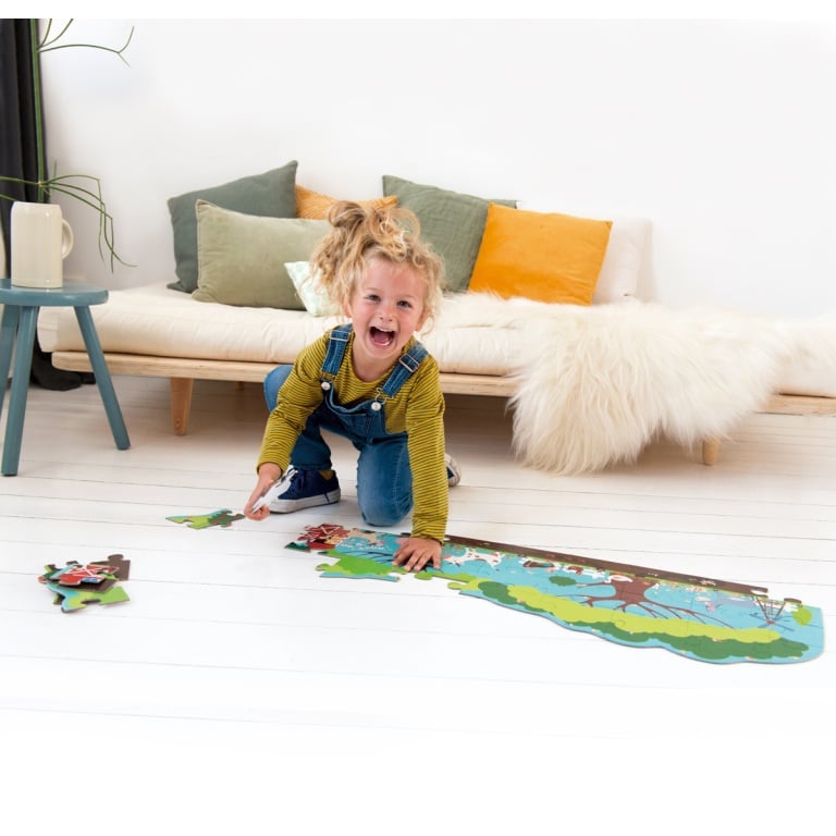 Nice extra: 5 blocks have a cut-out so that you can place 2 blocks over each other. For example, place “block 10” over “block 9” and so combine the habitat with the right animal. So, for example, you can combine the bamboo forest with the panda, the lion in the savannah, the toucan in the jungle, etc. In this way the child learns in a fun and playful way which animal belongs where.