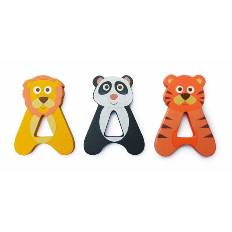 The letters are made of wood and are very delicately carved, which results in their super tiny details such as paws, teeth and wings.