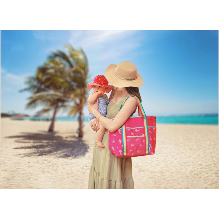 Grab one of these adorable beach totes and fill it fill of all your towels, goggles, toys and games and venture out for a day at the pool, beach or your own backyard. These beach totes are loaded with pockets to keep you organized and made with durable straps and high quality construction to withstand whatever you throw at it. When the day is done, simply wipe clean and relax!