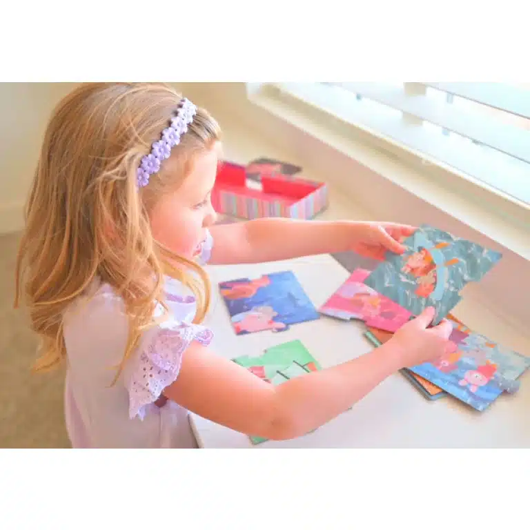 With 20 double-sided illustrated puzzle pieces, you can mix, match, and move around different characters and backgrounds to write then rewrite your own unique story.